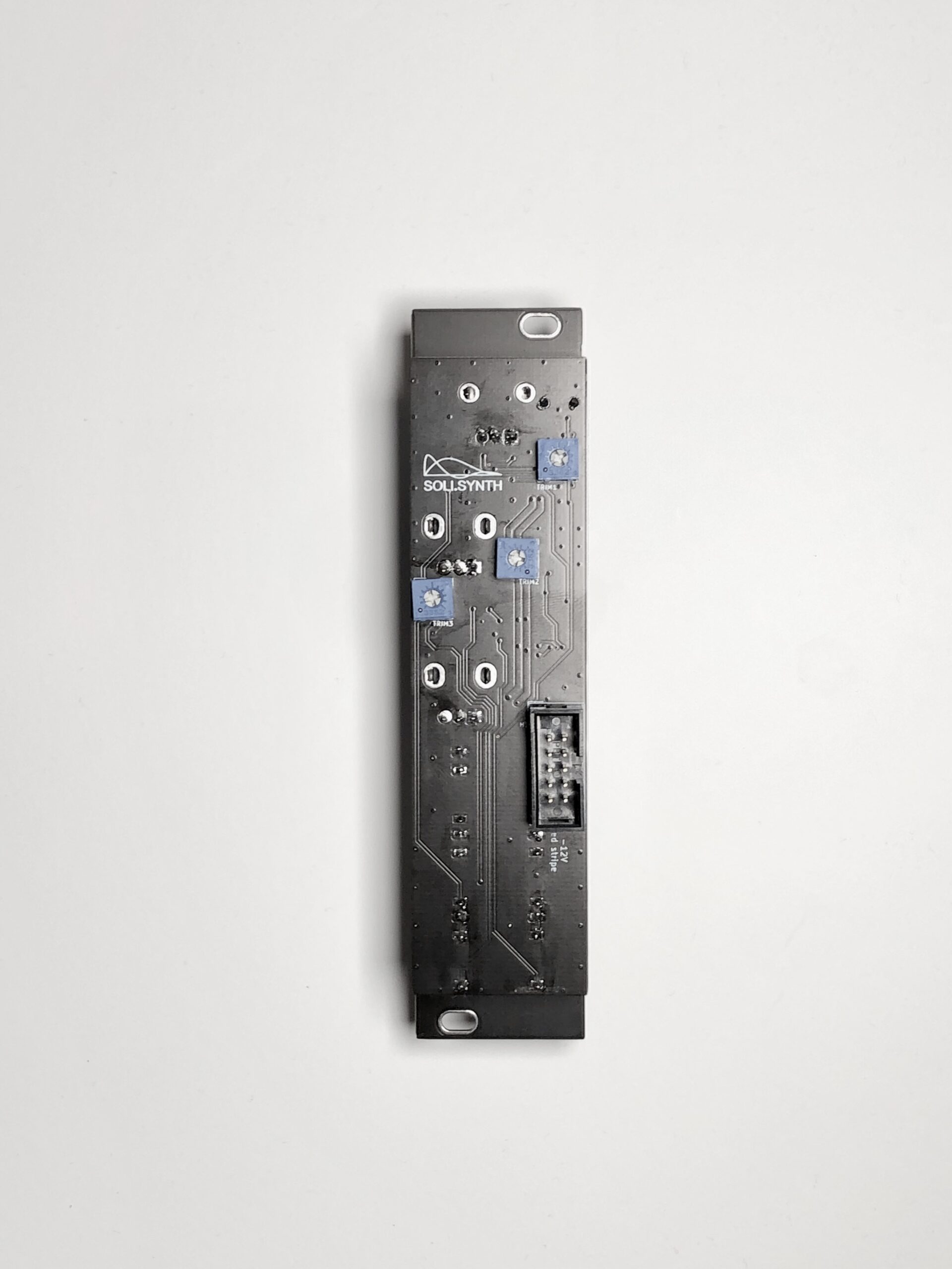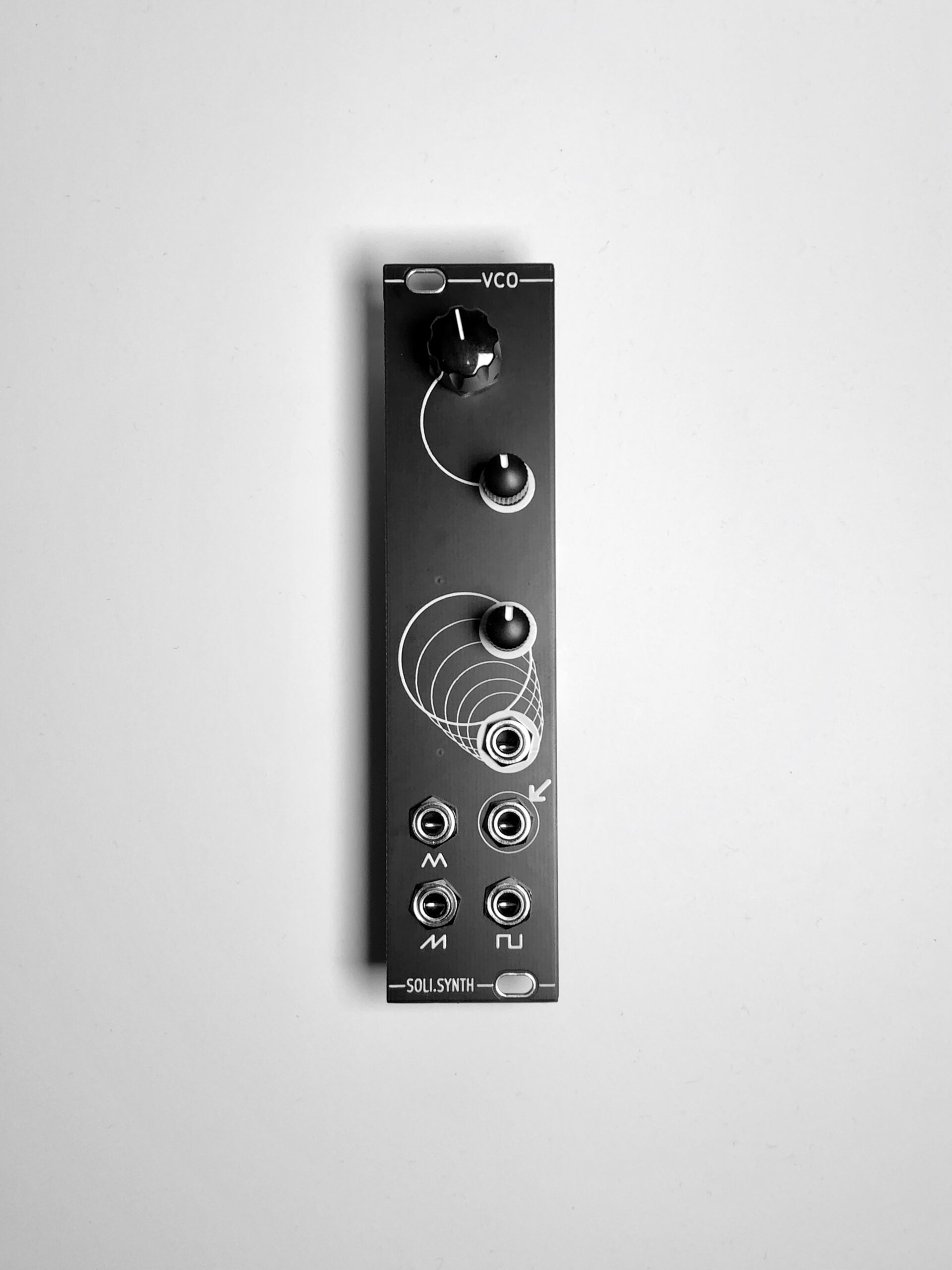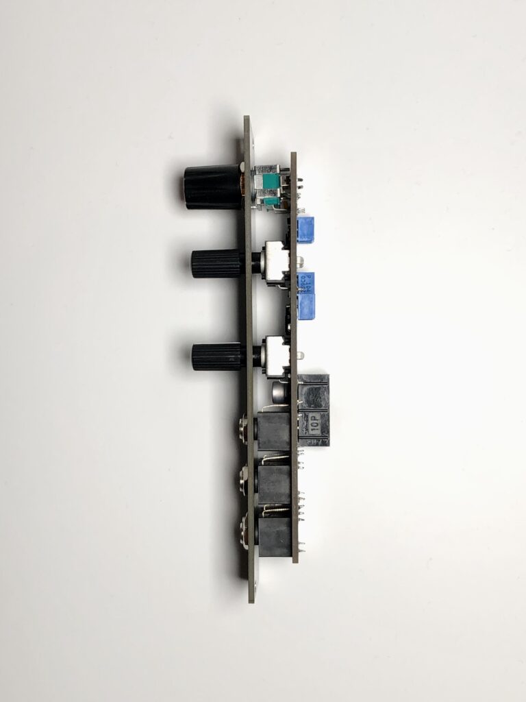 VCO is a basic analog sawtooth core voltage controlled oscillator based on the electronotes circuit ENS-76 option 1. It’s frequency range is 32Hz to 6.5kHz and additionally to it’s sawtooth output it provides triangle and square out. Beseides a Caorse and a fine tuen knob there is also a linear FM input with attenuation.